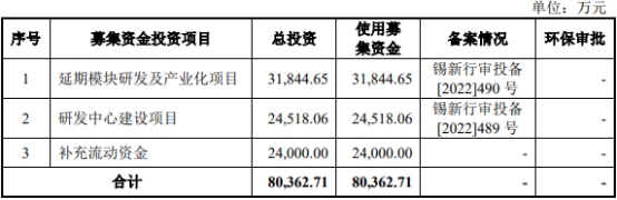 盛景微本次发行募集资金总额96,086.33万元,扣除发行费用后,募集资金净额为86,408.42万元。盛景微最终募集资金净额较原计划多6,045.71万元。盛景微于2024年1月19日披露的招股说明书显示,公司拟募集资金80,362.71万元,分别用于延期模块研发及产业化项目、研发中心建设项目、补充流动资金。