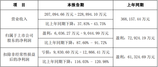 公司预计扣除非经常性损益后的净利润亏损9,830.60万元至12,866.41万元,较上年同期下降116.03%至120.98%,预计非经常性损益对公司净利润的影响金额为15,866.87万元至21,911.39万元,主要系交易性金融资产公允价值变动损益以及理财产品产生的投资收益,上年同期非经常性损益金额为11,599.50万元。