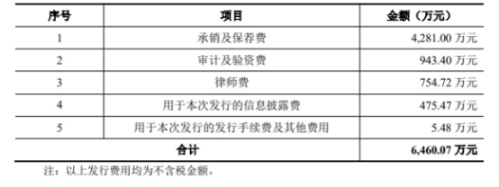 恒光股份本次发行费用为6460.07万元,其中保荐机构、主承销商西部证券获得承销及保荐费4281.00万元。