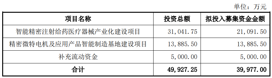 华阳智能本次发行募集资金总额为39,973.07万元,扣除发行费用后的募集资金净额为34,515.81万元。公司最终募集资金净额比原计划少5,461.19万元。华阳智能2024年1月30日披露的招股书显示,公司拟募集资金39,977.00万元,用于智能精密注射给药医疗器械产业化建设项目、精密微特电机及应用产品智能制造基地建设项目、补充流动资金。