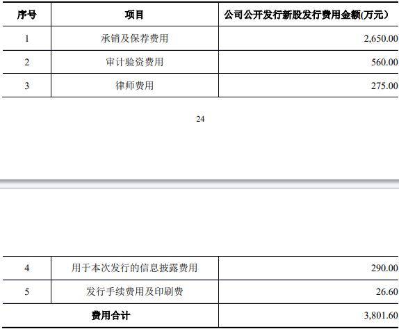 弘信电子上市发行费用总额为3,801.60万元,其中保荐机构东吴证券股份有限公司获得承销及保荐费用2,650.00万元。