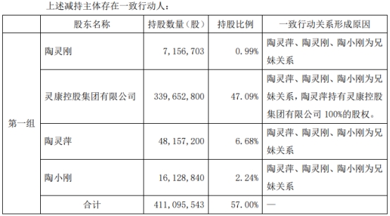 本次减持前,陶灵刚持有灵康药业股份7,156,703股,占公司总股本的0.99%。上述股份来源于公司首次公开发行股票前取得及资本公积金转增的股份;已于2018年5月29日解除限售。