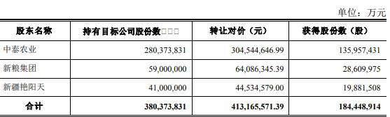 公司于2023年10月28日披露的《发行股份购买资产并募集配套资金暨关联交易报告书(草案)(修订稿)》显示,公司拟以发行股份方式向中泰农业、新粮集团、新疆艳阳天购买其合计持有的新粮艳阳天100.00%股份,同时募集配套资金。本次交易前公司未持有新粮艳阳天的股份;本次交易完成后,新粮艳阳天将成为公司的全资子公司。