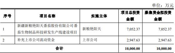 同时,公司拟向不超过35名特定对象发行股份募集总额不超过10,000.00万元的配套资金,不超过本次发行股份购买资产交易对价的100.00%,且发行股票数量不超过发行前公司总股本的30.00%。募集配套资金拟在支付本次重组相关费用后投入新疆新粮艳阳天番茄股份有限公司番茄生物制品科技研发生产线建设项目、补充上市公司流动资金。