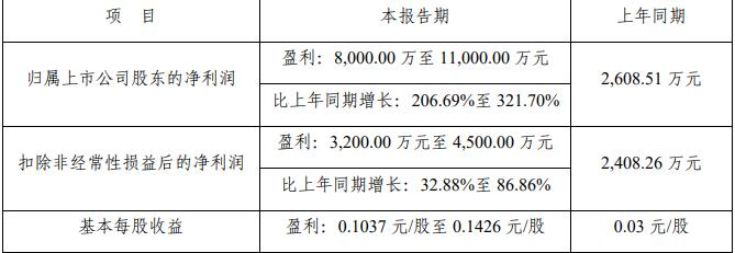 据中基健康2023年度业绩预告,2023年1月1日至2023年12月31日,公司归属上市公司股东的净利润预计盈利8,000.00万至11,000.00万元,比上年同期增长206.69%至321.70%,上年同期2,608.51万元;扣除非经常性损益后的净利润预计盈利3,200.00万元至4,500.00万元,比上年同期增长32.88%至 86.86%,上年同期2,408.26万元。