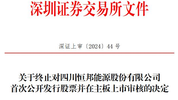 深交所于2023 年3 月3日依法受理了恒邦能源首次公开发行股票并在主板上市的申请文件,并依法依规进行了审核。2024年2月29日,恒邦能源向深交所提交了《关于四川恒邦能源股份有限公司撤回首次公开发行股票并在主板上市申请文件的申请》,保荐人向深交所提交了《华西证券股份有限公司关于撤回四川恒邦能源股份有限公司首次公开发行股票并在主板上市申请文件的申请》。根据《深圳证券交易所股票发行上市审核规则》第六十二条的有关规定,深交所决定终止对恒邦能源首次公开发行股票并在主板上市的审核。