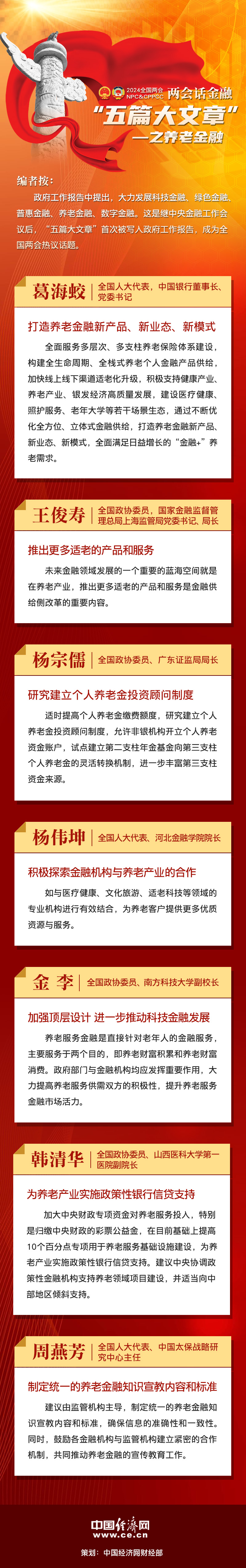 编者按:政府工作报告中提出,大力发展科技金融、绿色金融、普惠金融、养老金融、数字金融。这是继中央金融工作会议后,“五篇大文章”首次被写入政府工作报告,成为全国两会热议话题。