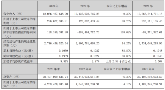 2023年,天虹股份基本每股收益0.1939元/股,同比增长88.80%;加权平均净资产收益率5.51%,同比上升2.54个百分点。
