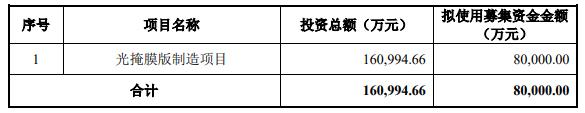 冠石科技2023年度向特定对象发行股票证券募集说明书(修订稿)显示,本次向特定对象发行股票募集资金总额不超过80,000.00万元(含本数),在扣除发行费用后拟全部用于光掩膜版制造项目。