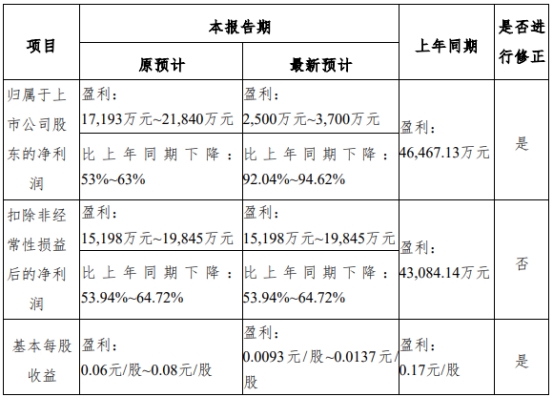 中国经济网北京3月18日讯 华林证券(002945.SZ)今日晚间发布2023年度业绩预告修正公告。此前公司预计2023年归属于上市公司股东的净利润为1.72亿元至2.18亿元,基本每股收益为0.06元/股至0.08元/股;修正后,公司最新预计2023年归属于上市公司股东的净利润为2,500万元至3,700万元,比上年同期下降92.04%至94.62%,基本每股收益为0.0093元/股至0.0137元/股。