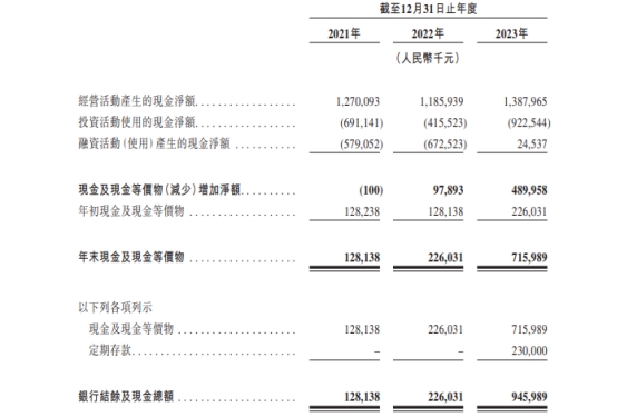 2021年、2022年、2023年,茶百道经营活动产生的现金净额分别为12.70亿元、11.86亿元、13.88亿元。