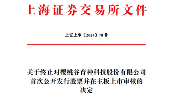 中国经济网北京3月27日讯 上交所网站日前公布了关于终止对樱桃谷育种科技股份有限公司(以下简称“樱桃谷”)首次公开发行股票并在主板上市审核的决定。