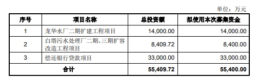 赣州水务原拟在深交所主板发行股票数量不超过8,000.00万股,且占发行后总股本的比例不低于25%;原拟募集资金55,400.00万元,计划用于龙华水厂二期扩建工程项目、白塔污水处理厂二期、三期扩容改造工程项目、偿还银行贷款项目。