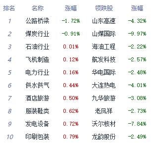 板块方面,光学光电子、小金属、机场航运等涨幅居前,公路铁路运输、煤炭开采加工跌幅居前。