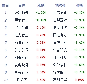 板块方面,光学光电子、小金属、机场航运等板块涨幅居前,公路铁路运输、煤炭开采加工板块跌幅居前。