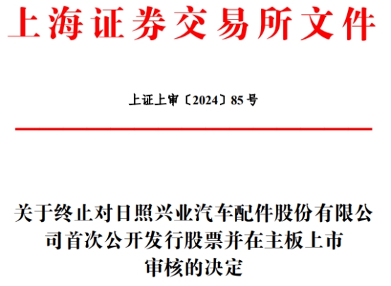 中国经济网北京4月4日讯 上交所网站昨日发布关于终止对日照兴业汽车配件股份有限公司(简称“兴业汽配”)首次公开发行股票并在主板上市审核的决定。
