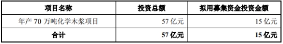 华泰股份2023年9月9日披露向不特定对象发行可转换公司债券募集说明书(2023年半年报更新稿),公司本次向不特定对象发行可转债募集资金总额不超过15亿元(含15亿元),扣除发行费用后,计划用于年产70万吨化学木浆项目。