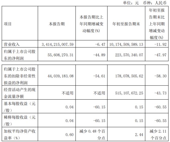 华泰股份2023年三季度报告显示,公司2023年前三季度实现营业收入101.75亿元,同比下降11.92%;实现归属于上市公司股东的净利润2.24亿元,同比下降47.97%;实现归属于上市公司股东的扣除非经常性损益的净利润1.78亿元,同比下降58.30%;经营活动产生的现金流量净额为5.15亿元,同比减少43.73%。