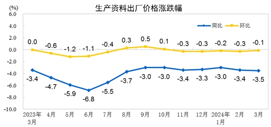 国家统计局:2024年3月PPI同比下降2.8% 环比下降0.1%
