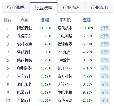 板块方面,厨卫电器、小家电、贵金属、白色家电等涨幅靠前,养殖业、传媒、食品加工制造、造纸等跌幅靠前。