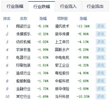 板块方面,贵金属、厨卫电器、小家电、白色家电等涨幅靠前,养殖业、保险及其他、传媒、房地产服务等跌幅靠前。
