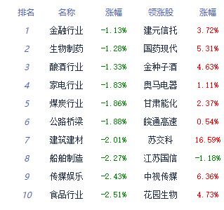 A股市场板块及个股涨跌幅排行