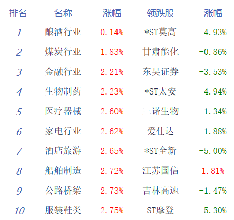 A股市场板块及个股涨跌幅排行
