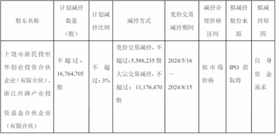 股东浙民投恒华、丝路基金因自身资金需求,计划通过集中竞价及大宗交易方式减持其持有的公司股份合计不超过16,764,705股,减持比例不超过公司总股本的3%。其中:拟通过集中竞价方式进行减持的,将于公告披露之日起15个交易日后的3个月内减持公司股份不超过5,588,235股,即减持不超过公司总股本的1%,且在任意连续90日内,合计减持股份总数不超过公司总股本的1%;拟通过大宗交易方式进行减持的,将于公告披露之日起3个交易日后的3个月内减持公司股份不超过11,176,470股,即减持不超过公司总股本的2%,且在任意连续90日内,合计减持股份总数不超过公司总股本的2%。