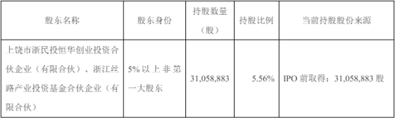 截至公告披露日,股东浙民投恒华、丝路基金分别持有公司无限售流通股份17,660,928股、13,397,955股,占公司总股本的3.16%、2.40%。浙民投恒华、丝路基金为一致行动人,合计持有公司无限售流通股31,058,883股,占公司总股本的5.56%。上述股份已于2023年2月2日解除限售并上市流通。