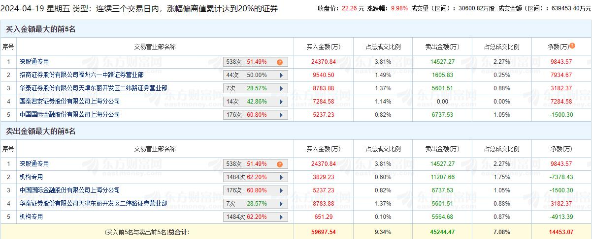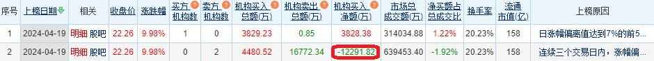 中信海直涨停 三个交易日机构净卖出1.23亿元