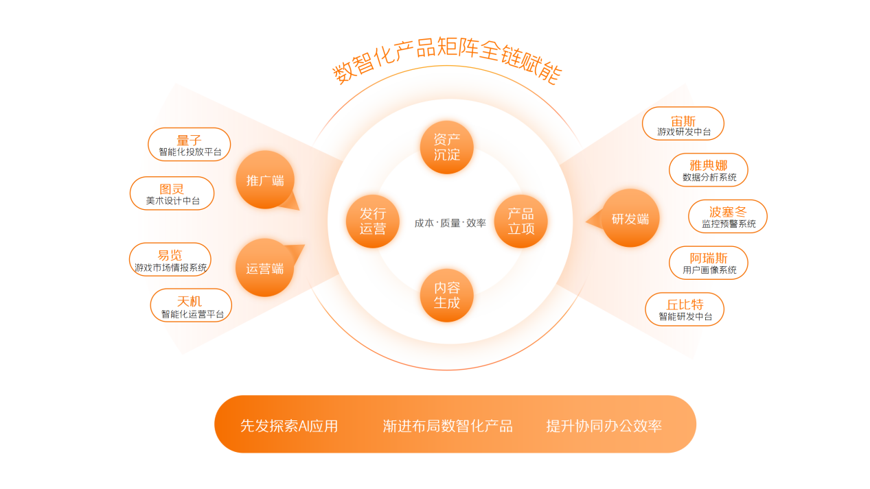 例如,公司自研美术设计中台“图灵”有效推动创意端美术工序协同管理、美术资产保存检索和2D图像智能生成,大幅提高了2D美术工作的效率,每月各业务线合计AI-2D绘图产量超过28万张,在角色原画环节能节省60%-80%的工时。在发行侧,公司推广运营端数智化产品自投入使用至今,有效缩短游戏产品广告上线所耗时间,其提升的效率已达到过往的10倍。在研发侧,公司基于智能研发中台“丘比特”开展包括AI平衡性测试以及利用AI算法实现高精度、高性能的动作捕捉等在内的一系列技术研究与应用,有效提升研发效率和质量。