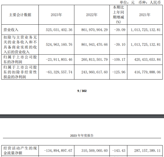 中国经济网北京4月25日讯 华盛锂电(688353.SH)昨晚披露的2023年年度报告显示,公司2023年度实现营业收入5.25亿元,同比下降39.09%;归属于上市公司股东的净利润为-2391.18万元,上年同期为2.61亿元;归属于上市公司股东的扣除非经常性损益的净利润-6332.96万元,上年同期为2.44亿元;经营活动产生的现金流量净额为-1.35亿元,上年同期为3.11亿元。
