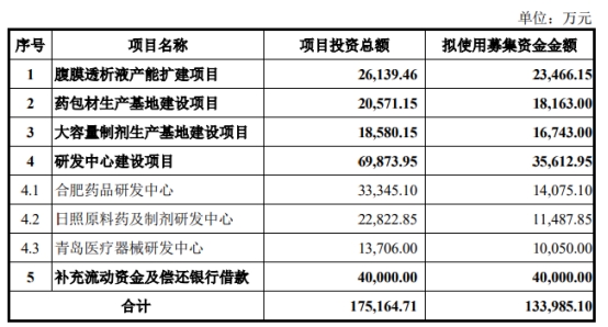 2023年3月25日,华仁药业发布了《2023年度向特定对象发行A股股票预案》。本次向特定对象发行股票募集资金总额不超过133,985.10万元(含本数),扣除发行费用后的净额拟投资于以下项目:腹膜透析液产能扩建项目、药包材生产基地建设项目、大容量制剂生产基地建设项目、研发中心建设项目(包括合肥药品研发中心、日照原料药及制剂研发中心、青岛医疗器械研发中心)、补充流动资金及偿还银行借款。
