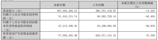苏文电能昨晚披露2024年一季度报告显示,报告期内,公司实现营业收入4.97亿元,同比下降14.42%;归属于上市公司股东的净利润5144.53万元,同比下降46.46%;归属于上市公司股东的扣除非经常性损益后的净利润4721.54万元,同比下降48.83%;经营活动产生的现金流量净额-7709.65万元,同比增长70.36%。