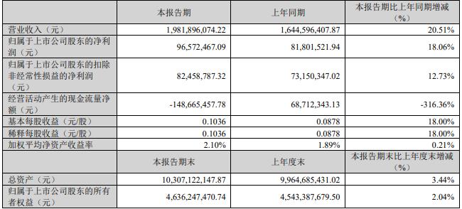 和而泰2024年第一季度报告显示,2024年第一季度,和而泰实现营业收入19.82亿元,同比增长20.51%;归属于上市公司股东的净利润9657.25万元,同比增长18.06%;归属于上市公司股东的扣除非经常性损益的净利润8245.88万元,同比增长12.73%;经营活动产生的现金流量净额-1.49亿元。