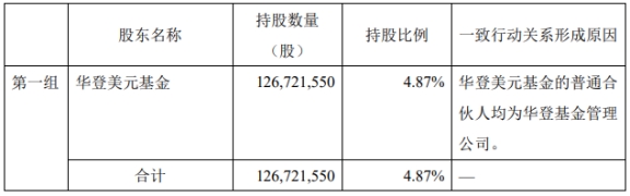 截至公告日,华登美元基金合计持有公司126,721,550股,占公司总股本的4.87%。上述股份来源均为公司首次公开发行股票并上市前持有的股份。