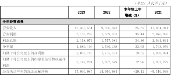 中国经济网北京5月6日讯 吉林银行近日发布2023年年度报告。2023年,吉林银行实现营业收入124.63亿元,同比增长25.55%;实现净利润18.89亿元,同比增长22.65%;实现归属于母公司股东的净利润20.54亿元,同比增长18.35%;归属于母公司股东的扣除非经常性损益净利润21.49亿元,同比增长12.96%;经营活动产生的现金流量净额为170.61亿元,同比减少29.12%。