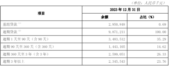 截至2023年12月31日,吉林银行逾期贷款余额98.71亿元。其中,逾期1天至90天(含90天)贷款余额34.84亿元,逾期90天至360天(含360天)贷款余额14.43亿元,逾期360天至3年(含3年)贷款余额25.99亿元,逾期3年以上贷款余额23.46亿元。