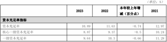 截至2023年12月31日,吉林银行的资本充足率、一级资本充足率、核心一级资本充足率分别为10.89%、9.64%、8.87%,较上年分别减少0.74个百分点、减少0.66个百分点、减少0.5个百分点。