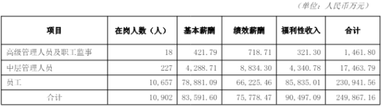 报告期末,吉林银行员工在岗人数合计10,902人,年度薪酬总量合计249,867.16万元。