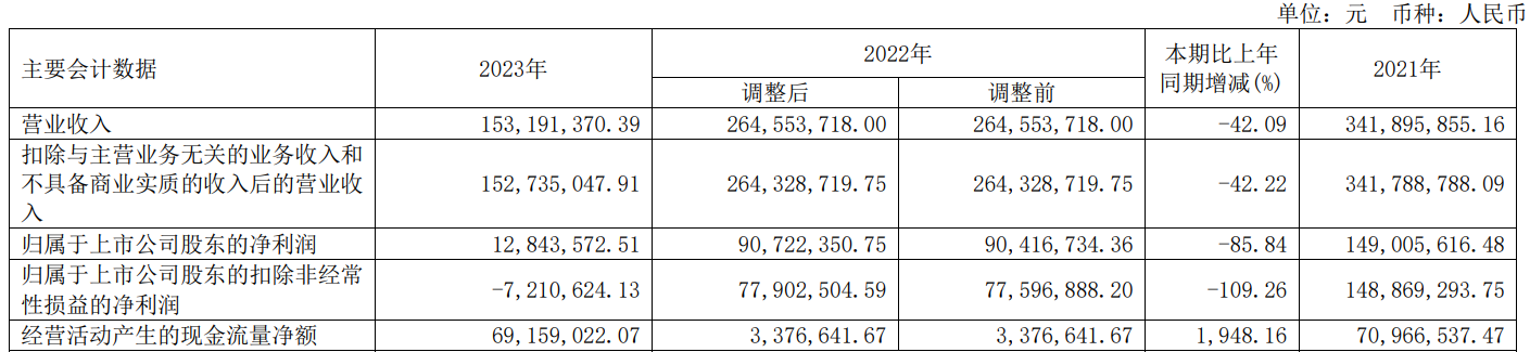 中国经济网北京5月8日讯 近日,近岸蛋白(688137.SH)发布2023年年度报告和2024年第一季度报告。公司2023年实现营业收入1.53亿元,同比下降42.09%;实现归属于上市公司股东的净利润1284.36万元,同比下降85.84%;实现归属于上市公司股东的扣非净利润-721.06万元,上年同期为7790.25万元,同比由盈转亏;经营活动产生的现金流量净额6915.90万元,上年同期为337.66万元。