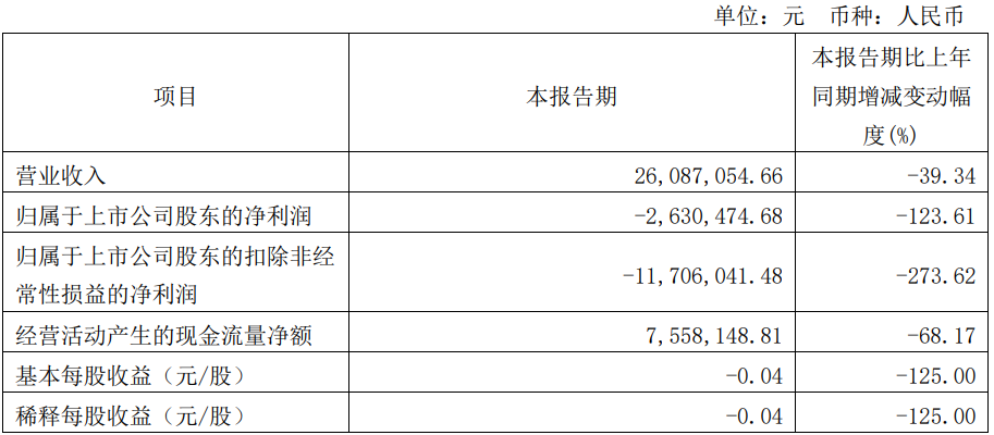 2024年第一季度,近岸蛋白实现营业收入2608.71万元,同比下降39.34%;实现归属于上市公司股东的净利润-263.05万元,同比下降123.61%;实现归属于上市公司股东的扣非净利润-1170.60万元,同比下降273.62%;经营活动产生的现金流量净额755.81万元,同比下降68.17%。