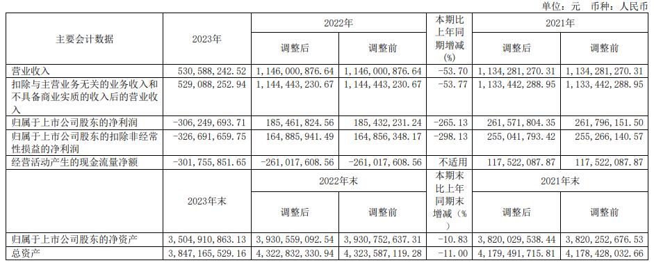 东芯股份2023年年度报告显示,报告期内,东芯股份全年实现营业收入5.31亿元,同比下滑53.70%;归属于上市公司股东的净利润-3.06亿元,同比下滑265.13%;归属于上市公司股东的扣除非经常性损益的净利润-3.27亿元,同比下滑298.13%;经营活动产生的现金流量净额-3.02亿元。