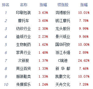 板块方面,教育、汽车整车、传媒等板块涨幅居前,煤炭开采加工、贵金属、燃气等板块跌幅居前。
