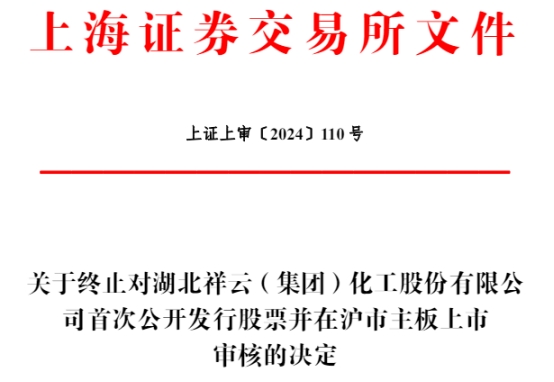 中国经济网北京5月16日讯 上交所网站昨日公布关于终止对湖北祥云(集团)化工股份有限公司(以下简称“祥云股份”)首次公开发行股票并在沪市主板上市审核的决定。