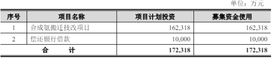 祥云股份原拟在上交所主板公开发行新股数量不超过4,723.2665万股,占发行后总股本的比例不低于25%,本次发行原股东不公开发售股份。公司原拟募集资金172,318万元,分别用于合成氨搬迁技改项目、偿还银行借款。