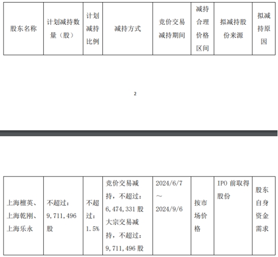 其中,拟通过集中竞价方式减持的,自公告披露之日起15个交易日后的3个月内进行,且任意连续90日内减持股份总数不超过公司总股本的1%;拟通过大宗交易方式减持的,自公告披露之日起3个交易日后的3个月内进行,且任意连续90日内减持股份总数不超过公司总股本的2%。