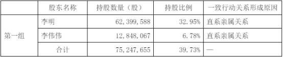 截至公告披露之日,公司实际控制人李明和李伟伟分别持有公司62,399,588股和12,848,067股,合计持有公司股份75,247,655股;分别占公司总股本的比例为32.95%和6.78%,合计占公司总股本的比例为39.73%。