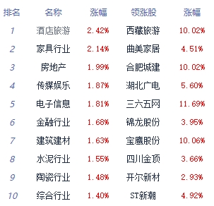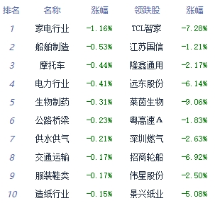 板块方面,房地产服务、房地产开发、景点及旅游等板块领涨,小家电、港口航运、汽车整车等板块领跌。
