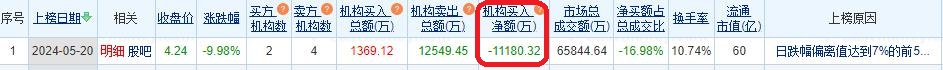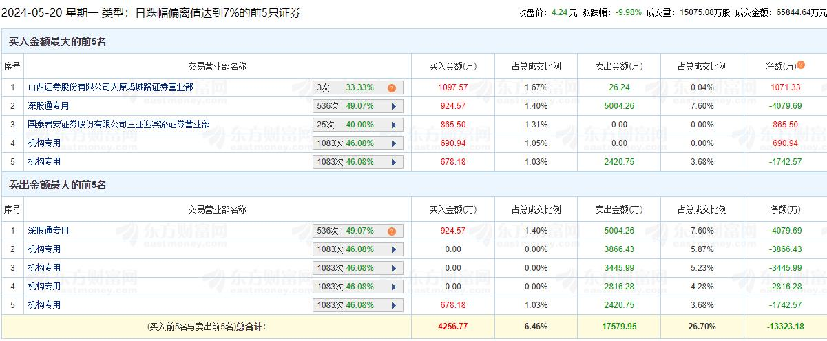 新乡化纤跌停 机构净卖出1.12亿元